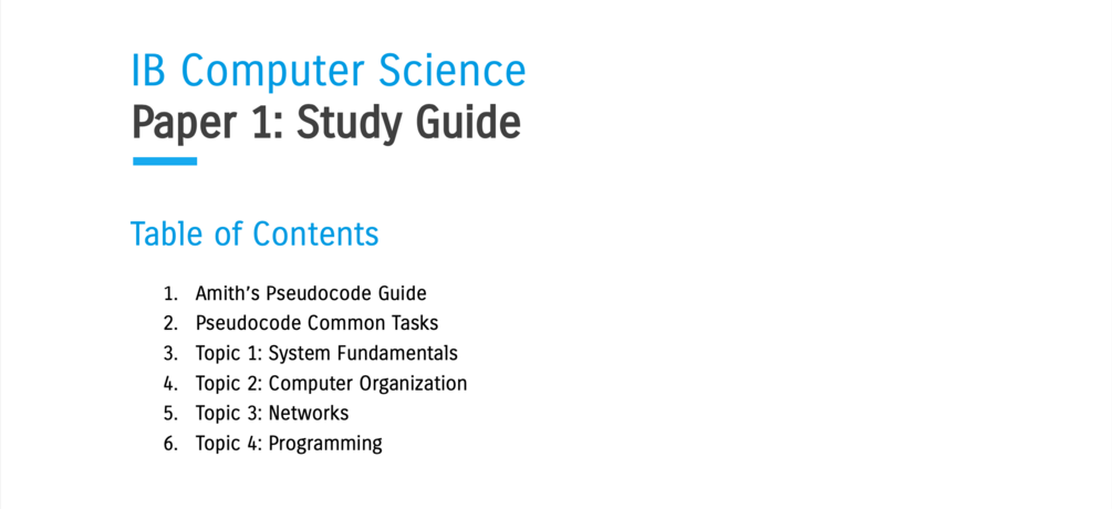 This is a comprehensive guide to all the content necessary for answering both theoretical and pseudocode-based questions on Paper 1 of the IBCS SL Exam.